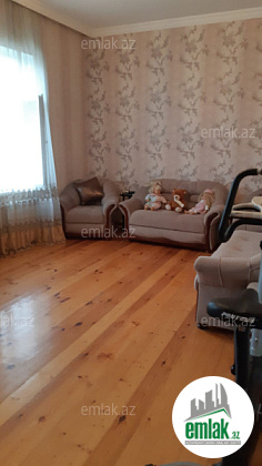 Satılmaq üçün tikilməyib,çox keyfiyyətli materiallardan inşa edilib,bünövrəsi 2 mərtəbəli ev üçün nəzərdə tutulub,döşəməsi 2 qatıdır(qırmızı şam) arası izolyasiya(kardon və steklovata)olunub,tavan ilə alçebanın arasında izolyasiya(pernoplas)var,dam örtüyü qalın asenkovu şiferdi,iki qat Qaradağ Çənlibel sahəsindən olan kubik ilə tikilib (suvağı ən yaxşı götürən kubikdir,göyçək kubik olmasa belə,vulkan,şüşə kubikdən bahadır),xəlbir gəc suvağı və ağ dağ zamaskası.Evin aynaları plastik (türk). Qapıları bahalı təbii taxtadan düzəlib.Ayrıca tualet,soyunma otağı,hamam,qazanxana,kombi sistemi,2 ədəd kondisioner,yaşayış çox az olub,ev əşyaları ilə birgə satılır,qonaq otağında Saloğlu şirkətindən yumşaq mebel dəsti,8 nəfərlik masa və təbii ağacdan 8 stul,iki ədəd kamot,baş otaqda yaxşı vəziyyətdə 7 nəfərlik divan kreslo,masa və stullar,uşaq otağında çox bahalı,pultla işləyən maşın çarpayı,yataq dəsti,mətbəxdə boş firmasının çox böyük soyuducusu(3000azn),böyük künc (bahalı maşın dərisi)divan,masa və 4 ədəd oturacaq, mətbəx mebeli,yataq otağında yataq dəsti və s.damın üstündə 2 tonluq çən,həyətdə yer altı 12 tonluq beton çən,7 ədəd meyvə ağacı.Həyəti təmir olunmayıb,sadəcə beton tökülüb.Həyətinə rahatlıqla 3 avtomobil sığışır.Evin üzəri suvaq olunmayıb.Küçənin kanalizasiya sistemi mövcuddur, telefon,internet var.Qaz,su,işıq daimi və fasiləsizdir.Ev 4 otaqdan və böyük mətbəxdən ibarətdir-mətbəx studio tipli,6-7 nəfər rahat masa arxasında əyləşə bilir.