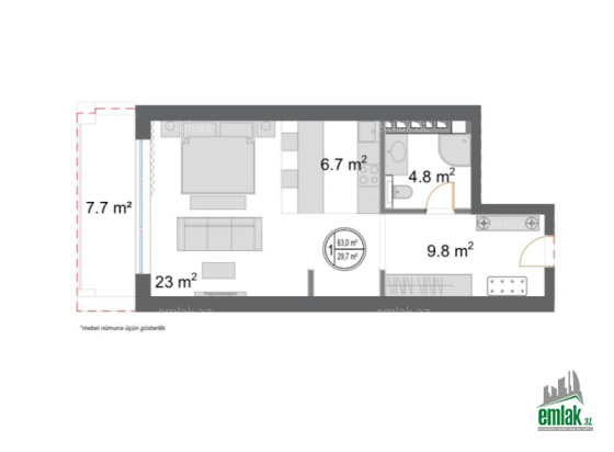 Sahə63 m2