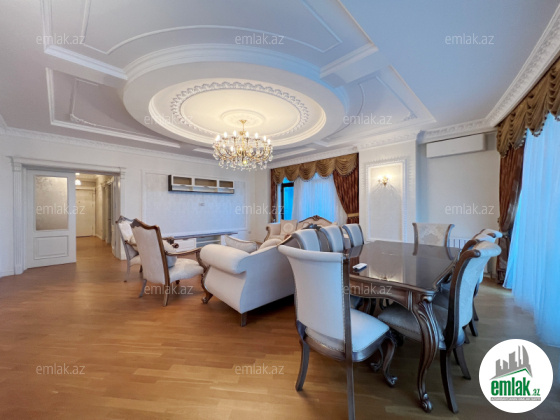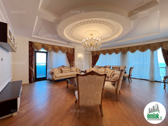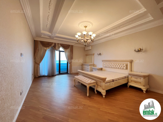 Xətai rayonu, Megafun əyləncə mərkəzininin üstü, tam yaşayışlı yeni tikilidə 4 otaqlı mənzil kirayə verilir. Ümumi sahəsi 250 kv.m., 7/27. Dənizə gözəl mənzərəsi olan 3 açıq eyvanı. Əla təmirli, 2 s/q, KATV, internet, 3 plazma tv, mərkəzi istilik və kondisioner sistemi. Quraşdırılmış mətbəx mebeli və texnikası. Mühafizə olunan həyəti, yeraltı qarajı var.