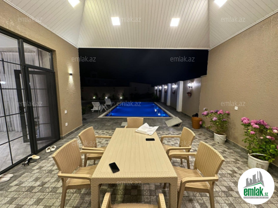 Həyət : Filterli daşma hovuz , 40 kv/m isti döşəmə söhbətgah, altında eyni həcmdə izolasiya olunmuş əşyaları yığmaq üçün otaq, 1 sanitar qovşaq, dekorativ ağaclar, 8 tonluq su anbarı, 20 tonluq şambo, jalüz darvaza, həyətın daşı - Vibrostone.
