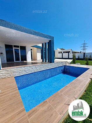 Həyətində filterli hovuzu, yaşıllıq ərazisi və növbənöv dekorativ ağacları mövcuddur.