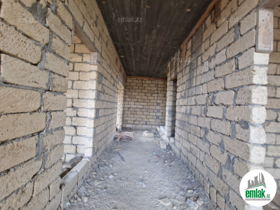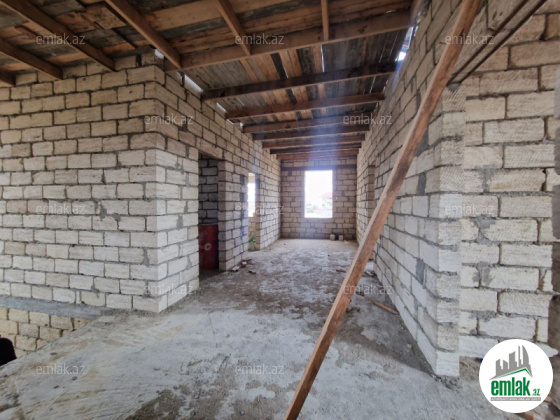 Şexsi tikilmis heyet evidir . Alt ust monalit betondur...7 otagdan ibaretdir . Orta temirli 6 sotun icinde.Otaglar genisdir. Evin icinde heyetin de hamam sanuzel var. Heyetde 10 t su baseyini var. Qaz su isig internet ...
