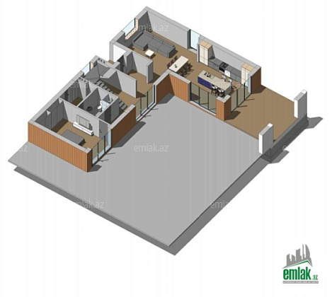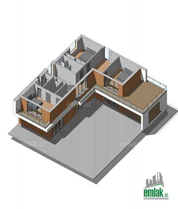 Ümumi sahəsi – 315 m2, yaşayış sahəsi 275 m2. 4 yataq otağı (ana yatağ otağın öz qarderob və s/q var), 3əd sanitar qovşağı, 1 zal/mətbəx studiya (ayırmaq olar), texniki otağ və çamaşirxana mövcuddur.