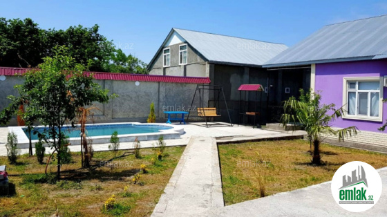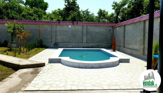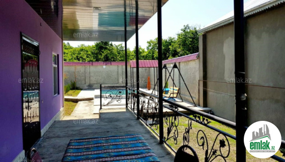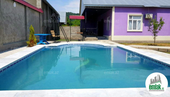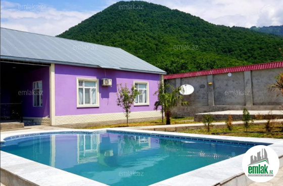 Mərkəzdən 2-3 dəqiqəlik məsafədə, gözəl dağ mənzərəli, istirahət mərkəzlərinə yaxın, qapıya kimi asfalt örtüyü, daimi su, qaz, işıq, geniş hovuzu, manqalı, somovarı, yelləncəyi, müxtəlif dekorativ və meyvə ağacları mövcuddur. Maşın saxlamaq üçün yer. Küçənin daimi ışıqlandırması. Yaşamaq və istirahət üçün evin hər şəraiti var.