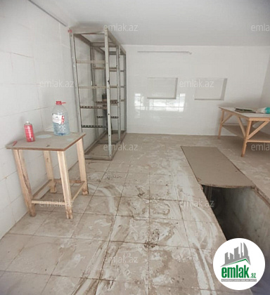 Qaraj daş, üstü beton plitə,dəmir qapı,yeri beton,divarlar suvaq,daxili el.xətti var.