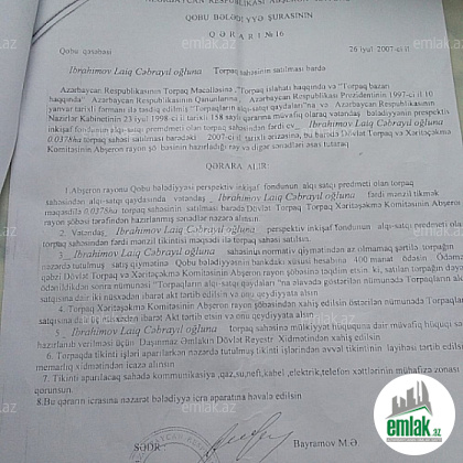 Qobu Lokbatan yoluna yaxın. Qobunun Lökbatan istiqametinde. 3.78 sot torpaq 11.000 AZN. Təyinatı "Fərdi ev