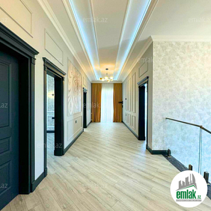 8 sot torpaq sahəsində 342 m² sahəni əhatə edən evin 1-ci mərtəbəsində geniş dəhlizi, qonaq otağı, yataq otağı, 1 hamam otağı, sanitar qovşağı və mətbəxi, 2-ci mərtəbəsində 4 yataq otağı, 2 sanitar qovşağı var. Həyətində filterli hovuzu,yay-qış mətbəxi var.