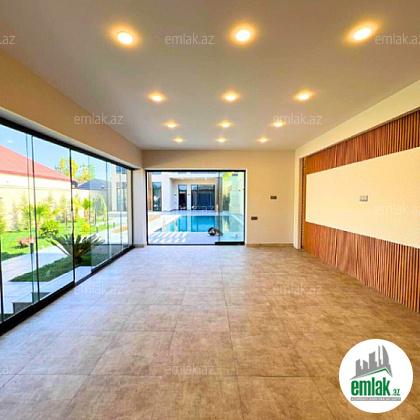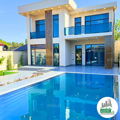 Həyətində filterli hovuzu, verandası, manqalı, böyük yay-qış mətbəxi, sanitar qovşağı, geniş yaşıllıq ərazisi və dekorativ ağacları var.