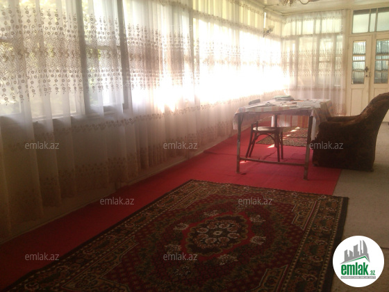 yoldan 100 metr arali,6 sot torpaqda tikilmiş,6 daş kürsülü,120 kv.m.4 otaqlı,əla təmirli ev.Ev əşyalarla bir yerdə satılir(soyuducu,paltaryuyan maşın,...