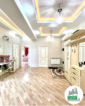Mənzil qismən əşyalı satılır:(Kondisioner,mətbəx mebeli (qaz üstü,aspirator və peç), çilçıraqlar,giriş qapının yanında şkaf.