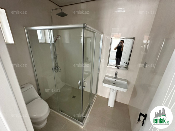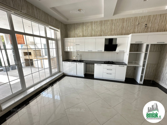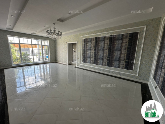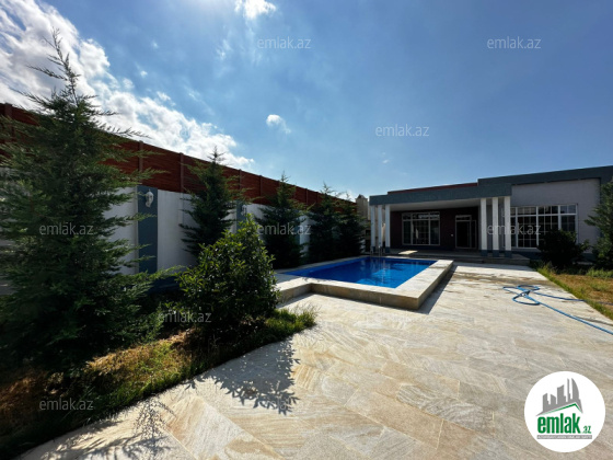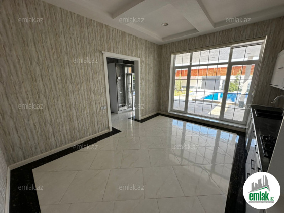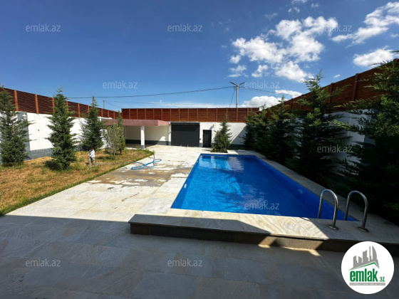 Mərdəkanda, İbo və Çem marketin yaxınlığında ümumi sahəsi 160 kvm rahat evdə: 1 qonaq otağı 46 kvm, 1 mətbəx 21 kvm, 3 yataq otağı hər biri 18 kvm, 2 sanuzel vardır. Bundan başqa 38 kvm açıq eyvanı (veranda) və həyətdə 1 ədəd üzmək üçün açıq hovuzu (4x8), qarajı (4x6) və 1 sanuzeli vardır. Kombi sistemi, 2 tonluq su çəni, 12 ədəd izləmə kamerası, internet xətti və həftənin 7 günü 24 saat mühafizə polisinin nəzarəti vardır.