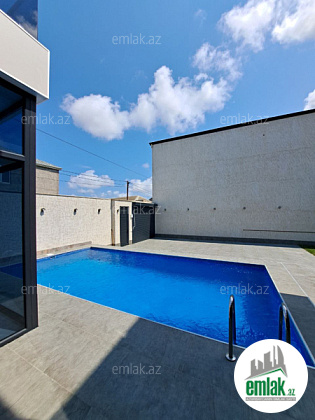 Həyətində hovuzu, manqalı, geniş yaşıllıq ərazisi və müxtəlif növdə dekorativ ağacları var.