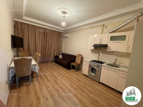İşıq, su, qaz daimidir, mətbəx mebeli, soyuducu, qaz plitəsi, paltaryuyan maşın, LCD televizor (xarici kanallar daxil), kondisioner, divan, masa və 5 stul ilə təmin edilir, internet aktivdir. Həyətində 7/24 Bravo market fəaliyyət göstərir.