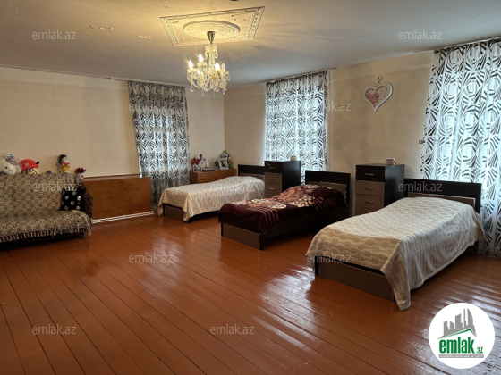 Ev əsas yolun və yol kəsişməsindədir hər bir yerə yaxındır məktəb bazar böyük marketlər hər tərəfi asfalt yoldur. Evin həyətində 8 maşın saxlamağa yer var. Evin arxasında 2 otaq hamam tualeti olan və küçəyə çıxışı olan əlavə ərazi varki alan şəxs gələcəkdə obyekt kimi istifadə edə bilər. Şəkildə hər bir şey aydın görsənir. Ev kombidir, hamam tualet razdıvalka istipoldur onunda kombisi ayrıdır ( şəkildə kombiler görsənir) Həyətində güllər və meyvə ağacları var. Real alicilara endirim olacaq