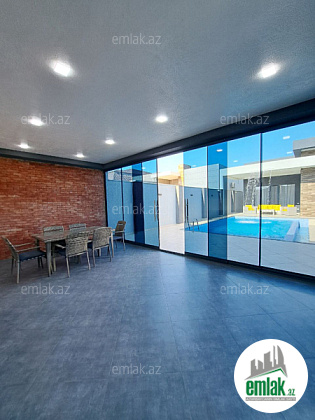 Həyətində filterli hovuzu, manqalı, yay-qış mətbəxi, terrası, sanitar qovşağı, maşın saxlamaq üçün sahəsi, geniş yaşıllıq ərazisi və dekorativ ağacları mövcuddur.