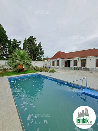 Həyətində hovuzu, manqalı, maşın saxlamaq üçün sahəsi, geniş yaşıllıq ərazisi və müxtəlif növdə dekorativ ağacları var.