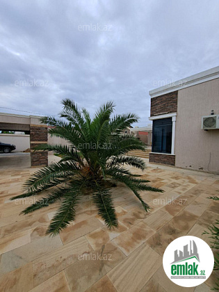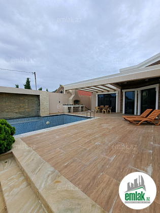 Həyətində filterli hovuzu, manqalı, verandası, geniş yaşıllıq ərazisi və müxtəlif növdə dekorativ ağacları var.