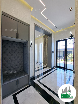 Ümumi sahəsi 220 m² olan evin geniş dəhlizi, qonaq otağı, 3 yataq otağı, 3 sanitar qovşağı, camaşırxanası, garderobu, mətbəxi və evin önündə verandası mövcuddur.