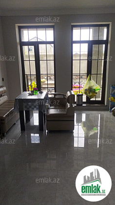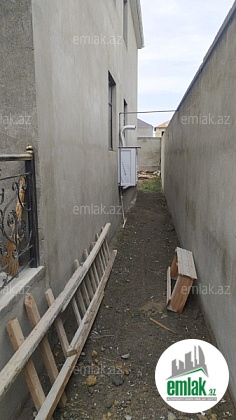 Ev 2 mertebedi. Heyetinde 4 tonluq su anbari var. 48 km² qaraji var, meyve agaclari var. Qazı, suyu, işığı daimidi. Eve baxmaq ucun axsam saat 6 dan sora gele bilersiz.233 nomreli mektebin yani