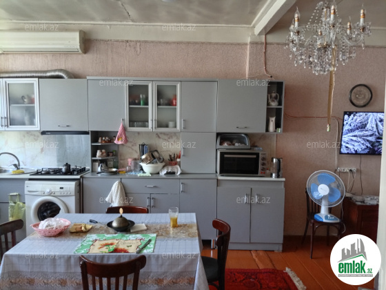 giriş otağı, evin arxasında və önündə həyəti, 6 tonluq yeraltı su hovuzu var, əşyaları ilə birgə satılır.