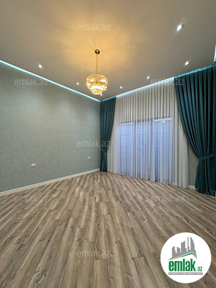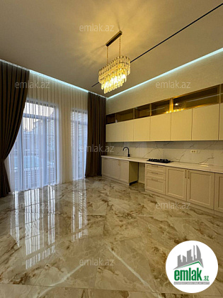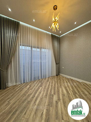 Mətbəx mebeli, hamam aksesuarları, pərdələr və çilçıraqlar quraşdırılıb.