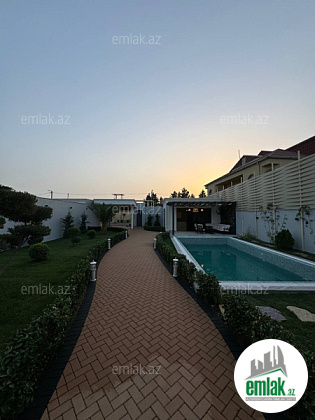 Həyətində daşma hovuzu, geniş yay-qış mətbəxi, yaşıllıq ərazisi, istirahət güşələri, qarajı və müxtəlif növdə dekorativ ağacları mövcuddur.
