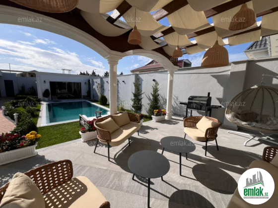 Xezer rayonu Merdekan villalar olan mehellede 7 sot torpaq sahesinde insa edilmis 1 mertebeli villa satilir.Umumi sahesi 250 kvmdir.1 zal, 4 yataq otagi , metbexi , 3 sanuzeli , meiset otagi , holl movcuddur.Heyetinde baseyin, yay qiw metbexti,terras ,manqalni ,aciq qaraj,bisetkasi. dekorativ ağacları, iwiqlandirma sistemi ,sanitar qovşağı , distansiyonu qapisi var.Evin tikintisində keyfiyyətli tikinti materiallarından istifadə edilmiş və çox səliqəli inşa edilmişdir . Qazi , suyu , isiqi daimdir .Senedleri qaydasindadir (KUPCA) .