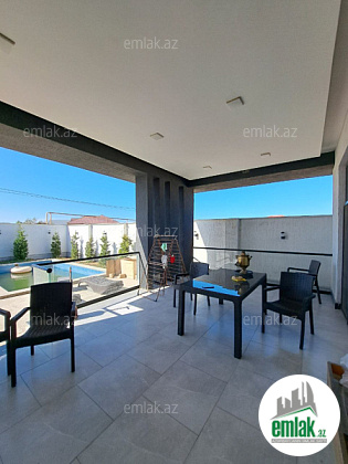Həyətində hovuzu, verandası, yaşıllıq ərazisi, müxtəlif növdə dekorativ ağacları var.