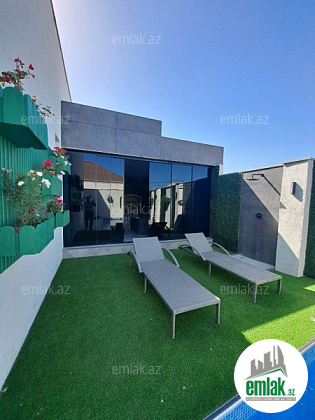 Həyətində filterli hovuzu, yay-qış mətbəxi, maşın saxlamaq üçün sahəsi, yaşıllıq ərazisi və dekorativ ağacları mövcuddur.