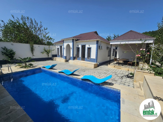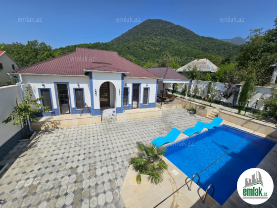 Zəng edərkən qalacağınız tarixləri və qonaq sayını mütləq qeyd edin !! Evlərə giriş saatı 14:00, çıxış saatı isə 12:00-dur. Qəbələ şəhər mərkəzində, Qəbələnd və Tufandağa 5-7 dəqiqəlik məsafədə yerləşir. Qapıya kimi asvalt yoldur. Bir mərtəbəli lüks villadır. 4 yataq otağı, 9 nəfərlik tam yatacaq var. 1-ci yataq otağında 1 taxt, 2-ci yataq otağında 1 taxt, 3-cü yataq otağında 3 tək, 4-cü yataq otağında 2 tək yatacaq var. 2 hamam ws (biri cöldə, biri içəridə), böyük geniş qonaq otağı metbex ilə birlikdə, 20 meqabit wifi, tv, soyducu və digər hər bir əşya və ləvazimatlar var. Həyətdə besedka, manqal, samovar, filterli hovuz (yalnız yay ayları üçün) var. İstilik sistemi kombi+isti döşəmədir. Çox yüksək səviyyədə isinir. Hovuzun ölçüləri 4x7 metr, dərinlik 1.5 metr. Hər otaqda kondisoner var. Günlük qiyməti 100 AZN. Vasitəçilik üçün xidmət haqqı 20 AZN.