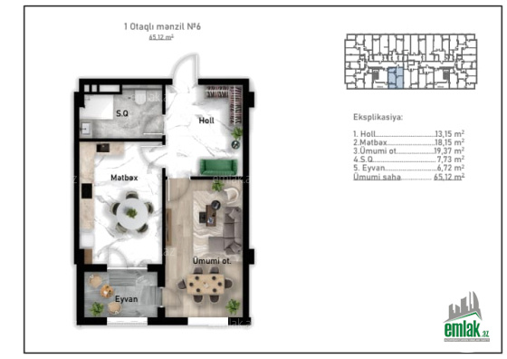Sahə65.12 m2