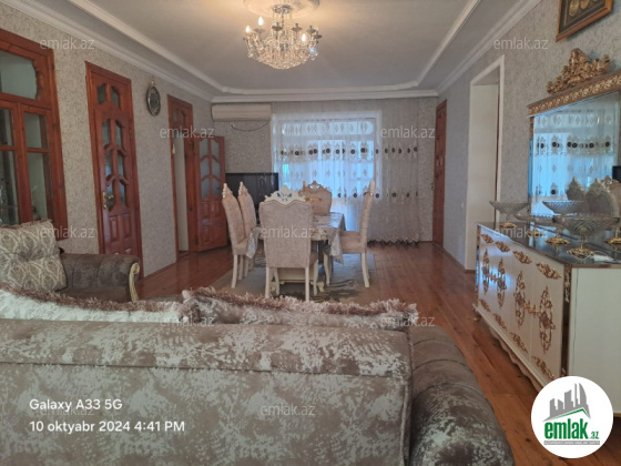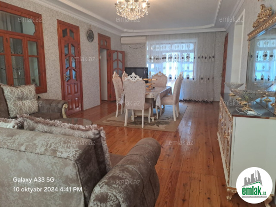 Altı qaraj həyət yanı sahəsi geniş üst mərtəbədə 3 otaq 1 zal mətbəx,hamam, tualet,yay balkonu mövcuddur.Bütün otaqlar təmirlidir. Sanitar qovşağı isti və soyuq su ilə təmin olunub.Mətbəx mebeli və digər mebel əşyaları qalacaq.