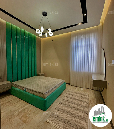 Merdekan qesebesinde villalar olan məhəllədə esas yola yaxın 4sotda 1 mərtəbəli ( Zirzemi / Qaraj) yeni əşyali modern bağ evi satılır. Ümumi sahəsi 270 kv.m olan bu bağda, 4 otaq var: 1genis qonaq otağı, 3 yataq otağı hər yataqda sanuzel , mətbəx, qarderob,xoll vardir.Mətbəx mebeli və sanuzellər quraşdırılıb,lyüsturlar və pərdələr asılıb.Heyetinde geniş filtirli hovuzu, bisetkasi , manqalni,yay ve qis metbexi, dekorativ aqaclari , sensorla olan gece isiqlari, sanitar qovsagi var.Darvaza pultla idarə olunur.Evin tikintisində keyfiyyətli tikinti materiallarından istifadə edilmiş və çox səliqəli inşa edilmişdir.Qaz,su, işıq daimidir. Senedleri qaydasındadır (Kupca)