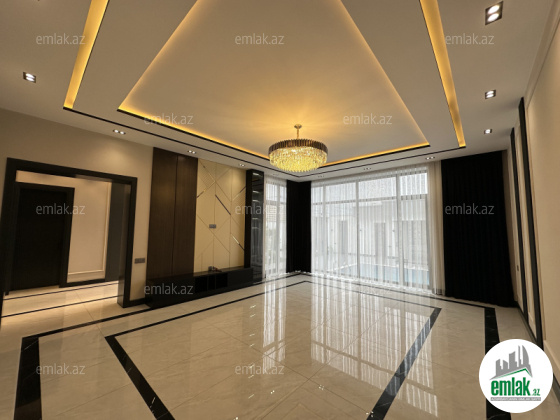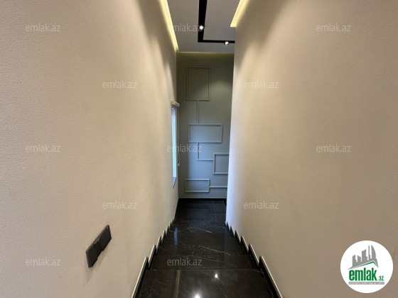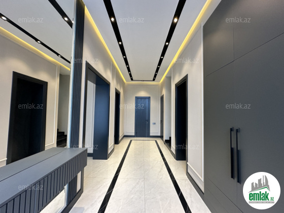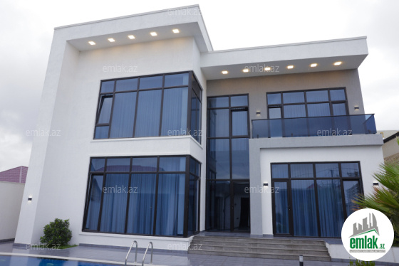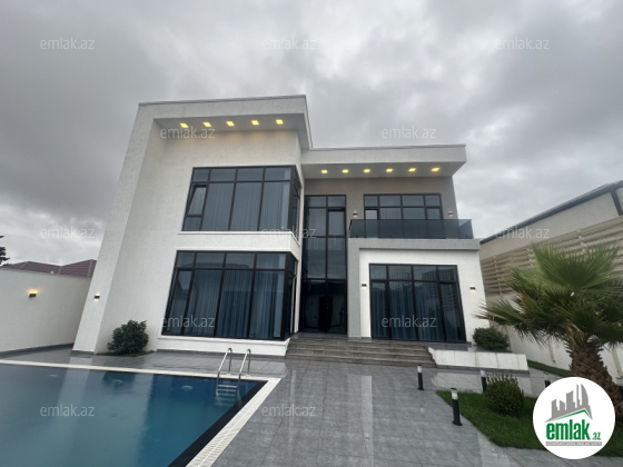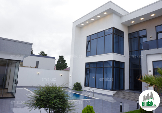Tecili.... Sizlere Xezer rayonu , Merdekan qesebesinde, Bravo supermarketinin arxasinda 5,5 sotda modern uslubda insha olunmush 2 mertebeli baq evi satisha cixib. Evin sahesi 300 m2 dir. 1ci mertebede genish dehliz, mebelle techiz edilmish metbex, qonaq otaqi, yataq otaqi. sanitar qovshaqi ve camashirxanasi var. Evin 2 ci mertebesinde 3 yataq otaqi oz sanitar qovshaqlari ve qarderoblari ile , saxlama otaqi ve eyvani var. Heyetinde filterli dashma hovuzu, yay - qish metbexi, manqalxanasi, dekorotiv aqaclari, genish yashilliqi , sanitar qovshaqi movcuddur. Ev tam olaraq isti dosheme ile techiz olunub, ve tam infrastrukturlu erazide yerlishir. Evin senedleri tam qaydasindadir. Cixarish (kupca) Alicilardan hecbir komissiya teleb olunmur