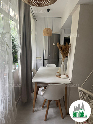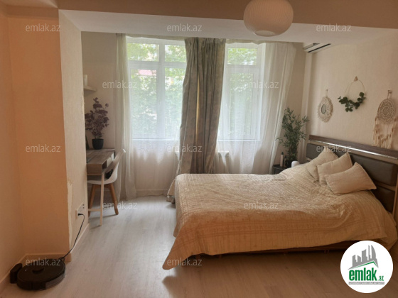 Daş binadır,yelçəkəndir(skvaznoy) binanın hər 2 tərəfinə də baxır,super təmirlidir,istipoldur,otaqlar və hamam-tualet ayrı-ayrıdır,çox gözəl dizaynla və bahalı təmir-tikinti materialları ilə,zövqlə işlənib,qaz,işıq,su,in...