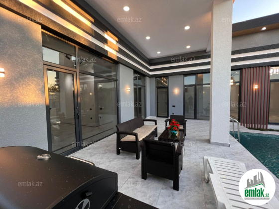 Xezer rayonu Merdekan qesebesi villalar olan mehellede Ag eve yaxin 4 sot torpaq sahesinde insa edilmis 1 mertebeli villa satilir.Umumi sahesi 170 kvm olan bu villanin 4 otagi var. holl , 1 zal , 3 yataq otag ,metbext , 2 sanuzeli movcuddur.Həyətində geniş filtirli hovuzu, bisetkasi,iwiqlandirma sistemi , dekorativ ağacları, sanitar qovşağı distansiyonu qapisi , var.Evin tikintisində keyfiyyətli tikinti materiallarından istifadə edilmiş və çox səliqəli inşa edilmişdir . Qazi , suyu , isiqi daimdir.Senedleri qaydasindadir.(KUPCA)