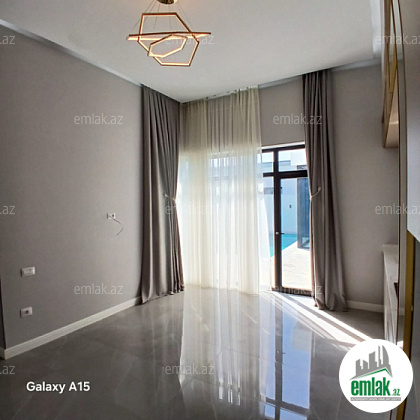 Ümumi sahəsi 220 m² olan evin geniş dəhlizi, qonaq otağı, 3 yataq otağı, 1 qarderobu, 3 sanuzel, mətbəxi vardır.