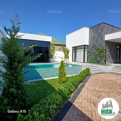 Həyətində filterli daşma hovuzu, sanitar qovşağı, yay-qış mətbəxi, maşın saxlamaq üçün navesi, besetkası, pultla idarə olunan darvazası, geniş yaşıllıq ərazisi və müxtəlif növdə dekorativ ağacları var.