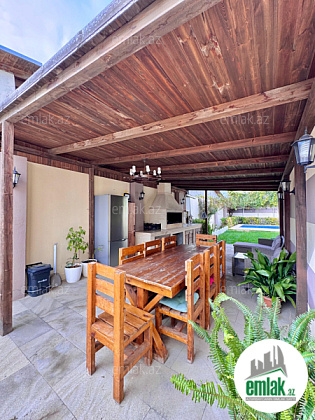 Bütün Əşyalarla!! Bakı Bağları şirkəti sizə ekoloji təmiz Mərdəkan qəsəbəsində Bravo marketə çox yaxın, Makaron fabrikinin arxasında, təzə yoldan 200 metr məsafədə 4 Sotda 1 mərtəbə 120 kv.m 3 otaqlı super bağ evini təklif edir. Bağ evi zal, mətbəx, 2 yataq otağı, holl və 1 sanuzeldən ibarətdir. Otaqlarda asılmış pərdə və lyüsturları, hündür tavanları, duş kabinalı sanuzeli, mebelli mətbəxi, quraşdırılmış işıqlandırma sistemi var. Ev yüksək zövq və keyfiyyətlə təmir olunub. Su, qaz, işıq daimidir. İstilik sistemi kombidir, isti döşəməsi var. Həyətində geniş filterli hovuzu, manqalxana, yay-mətbəxi, söhbətgah, maşın saxlamaq üçün yer, pultla idarə olunan darvaza, yaşıllıq ərazisi, dekorativ ağacları və gülləri, su anbarı, sensorlu gecə işıqları var. 4 mövsüm yaşamaq üçün əlverişlidir. Yolu qapıya kimi asfaltdır. Kupçası (Çıxarışı) var. Start qiyməti 200 000 AZN. Qeyd : Bakı ətrafı qəsəbələrdə, xüsüsən də Mərdəkan, Şüvəlan, Bilgəh, Nardaran və s. ərazilərdə satışda olan digər bağ evləri və villalarımız var. Buyurun bizə müraciət edin.