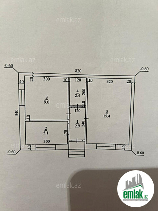 Ev: 50 m² — 2 otaq (otaqlardan biri kiçik)