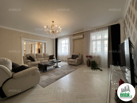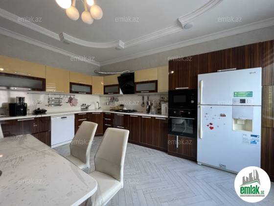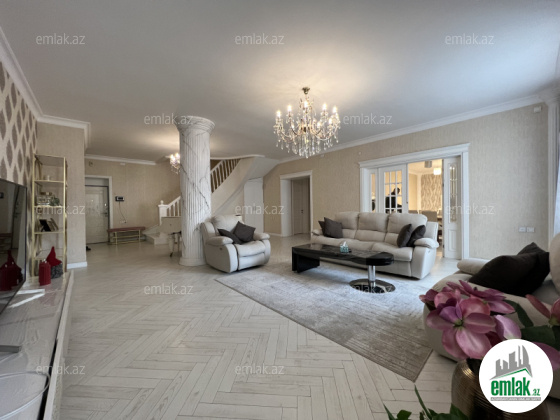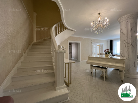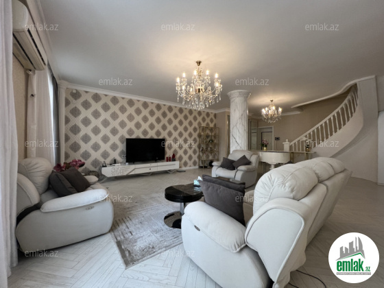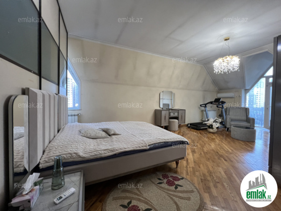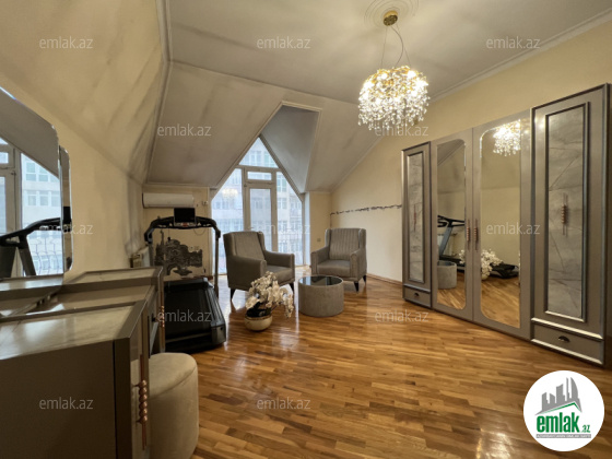 Ümümi sahəsi 310 m2, 6/7. + Çardaq. 4 balkon və 4 yataq otağı, 2 zal, 2 sanitar qovşağı, duş kabina, cakuzi.