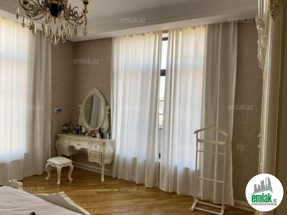 11 sot torpaqda yerleşir. Senedi kupcadir (ev ve torpaq daxil). Elit kuçede yerleshir( kanalizasiya, merkezi kuce ishiqlanmasi, asdalt ortuyu movcuddur). heyetde elave tikilisi ( qish bagi) qaraji, saunasi, 6 eded hamam tualeti movcuddur. Butun eşyalari ile birlikde satilir.