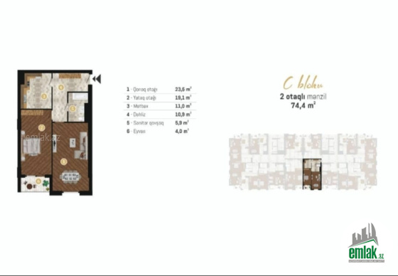 - Sahə75 m2