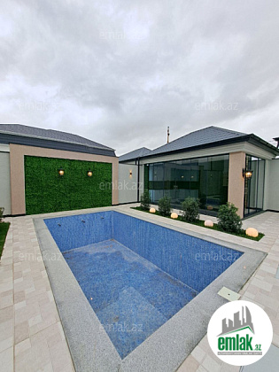 Həyətində hovuzu, yay-qış mətbəxi, maşın saxlamaq üçün ərazisi, geniş yaşıllıq ərazisi və müxtəlif növdə dekorativ ağacları var.