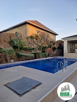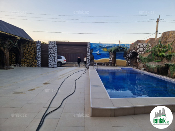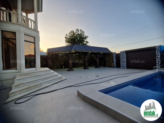 3 mərtəbə. Qaz, İşiq, su, kanalizasiya xətti, Kombi, internet var. Qoşa daşla tikilib. 1-ci mərtəbə qaraj, hovuz, 2 ədəd təmirsiz otaq. 2-ci mərtəbədə geniş zal, mətbəx, yataq otagı, sanuzel. 3-cü mərtəbədə 4 otaq sanuze...