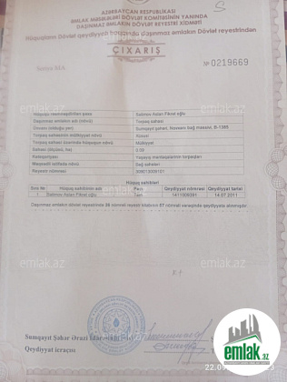 - Əmlakın növüTorpaq