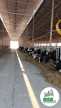 Gün erzinde 1400 Litr süd sagılır 0,85 azn yerinden alırlar 5 tonluq nerj süd saxlama ceni var 72 saat saxlayır südler tam elektron sagılır heyvanın altı tam olaraq avtomat temizlenir yerin altında anbarlar var ki oda kübre ve sidiyi bir birinden ayırır yem tedarükü demek olar ki 6-7 aylıq var Silos,yonca,qargıdalı,arpa,kepek yem dograyan aparat var yemi qarışdıran ve heyvanlara paylayan maşın var fermanın sahesi 4 hektar özel torpaqdı tikililerin senetleri kupcaya verilib 2 aya hazır olacsq ödenişide ödenilib 70 heyvandan elave 66 heyvan zakaz olunub ödenişide ödenilib 45 gün erzinde gelecek südün satmaq ve bazara cıxarmaq üçün qidadam bütün senetler alınıb.coban evi 2 otaq müdür evi 3 otaq her bir şeraiti var super temir suyu ozünün ayrıca transfarmatoru var 64 kv traktor,Uaz maşılar var 1 hektar 3 illik badam bagı var Südden gelen qazanc 1 ayda 36000 Azn olur bu gelir 70 inekden gelen gelirdi 50 heyvan sagılır hal hazırda 20 si bogazdı her bir inek günde 28-32 litr süd verir.