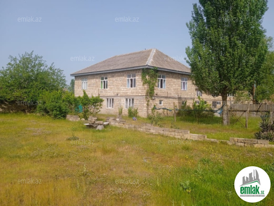 6 sotun içində,4 tərəfdən hasarlanmış, 10 daş kürsülü,mərtəbələr arası kəmər atılmış,evin alt mərtəbəsinin yer hissəsi sement betonla örtülmüş,4 otaqlı,təmirli,İşıq-qaz-su daimi.sənəd kupça cıxarışdır.