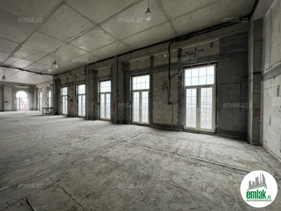 ümumi sahəsi – 256 kvadrat metrdir (144 kv.m+112 kv.m.). 11 pəncərə və balkon. Daxili hündürlüyü 4.5 metr.