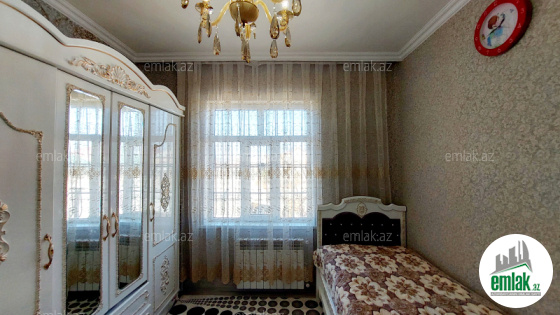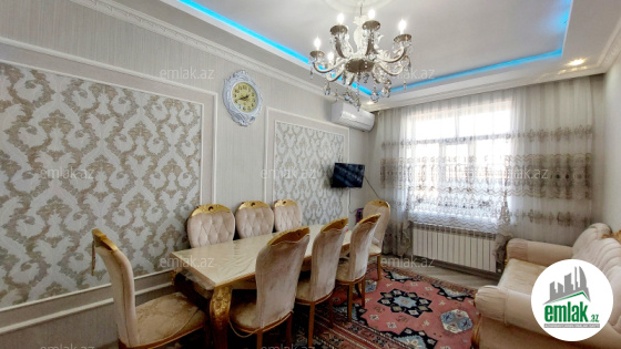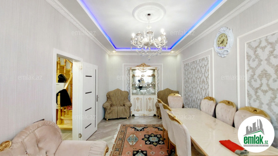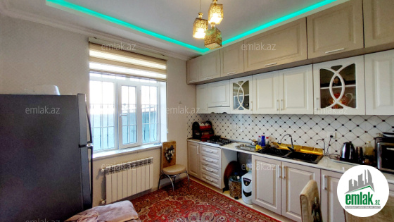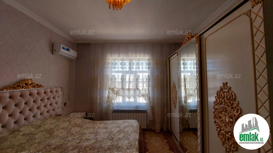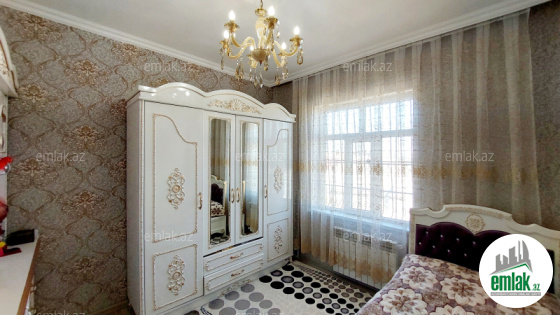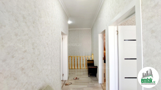 yoldan 100 metr arali,6 sot torpaqda tikilmiş,6 daş kürsülü,120 kv.m.4 otaqlı,əla təmirli ev.Ev əşyalarla bir yerdə satılir(soyuducu,paltaryuyan maşın,...